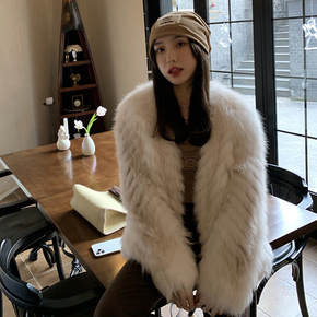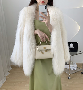 进口saga玛瑙狐狐狸毛皮草外套女短款气质年轻款反...