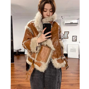 2021年冬季新款炸街年轻款皮毛一体外套女毛毛高级...