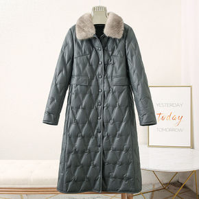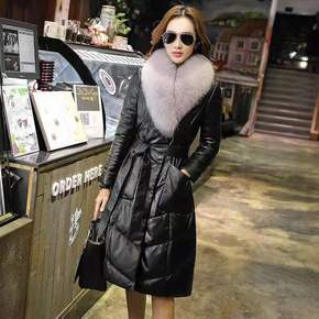 女式绵羊皮羽绒服白鸭绒狐狸毛领长款修身海宁皮草女冬...