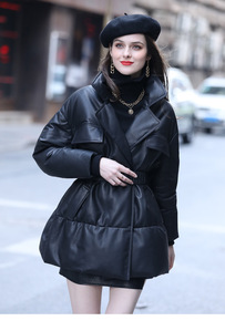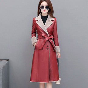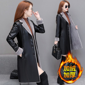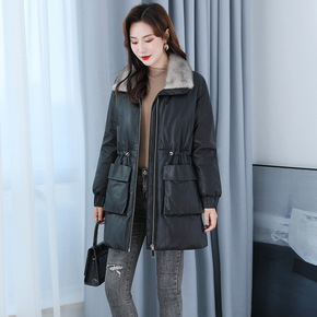 2019秋冬新款海宁加棉皮衣女中长款大码韩版气质修...