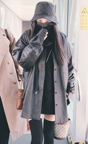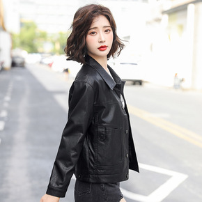 2020秋装新款女式机车皮衣BF大版休闲PU水洗皮...