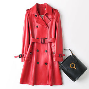品牌工厂 “时髦新番”绵羊皮真皮风衣皮衣翻领中长款...