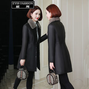 2019秋冬新款海宁皮衣女中长款修身显瘦韩版大码皮...
