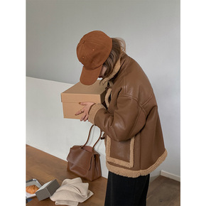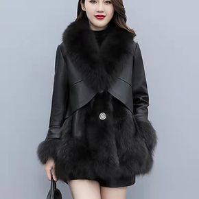 2020秋冬新款皮衣女中长款皮毛一体加绒加厚韩版修...