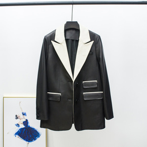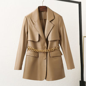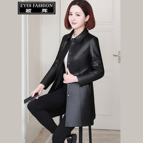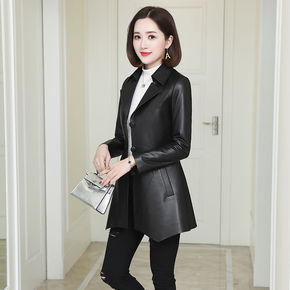 2020春秋新款海宁皮衣女中长款修身显瘦小西服女装...