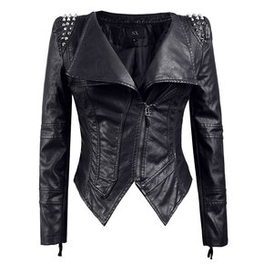 欧美速卖通wish爆款女装新款朋克铆钉耸肩修身机车...