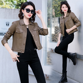 海宁皮衣女短款韩版修身皮夹克大码女装皮衣小外套女2...