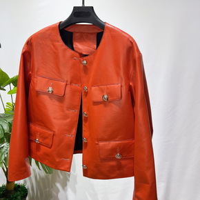 【卖断不补】头层绵羊皮真皮皮衣女外套小个子圆领时尚...