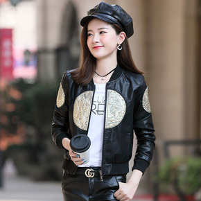 华哥弟情秋冬季新款女装短款机车绵羊皮衣韩版印花夹克...