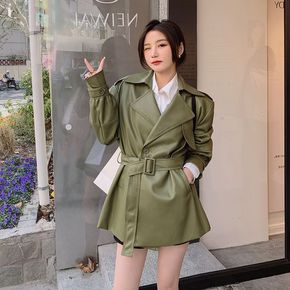 实拍新款炸街设计感韩版时尚pu皮衣外套女收腰系带显...
