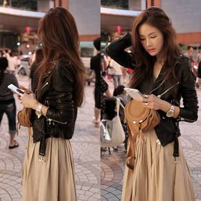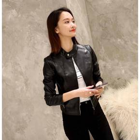 短款pu皮衣拉链女 短款小皮衣外套 修身皮衣 机...