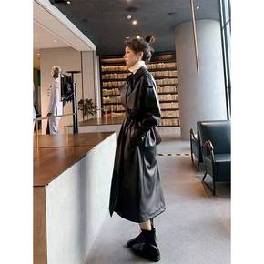 皮大衣女女皮衣哑光显瘦长款皮风衣2022新款春秋韩...