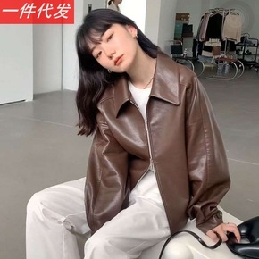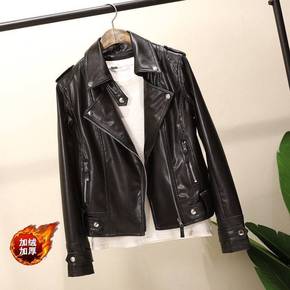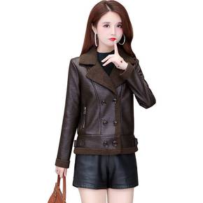 皮大衣女加绒/不加绒高品质皮衣长袖宽松休闲外套女短...