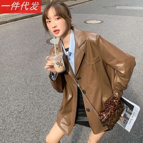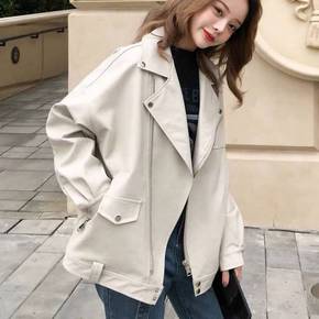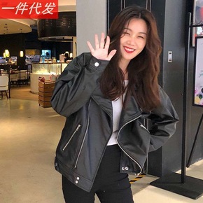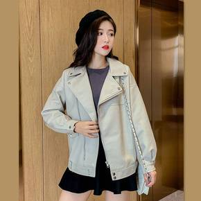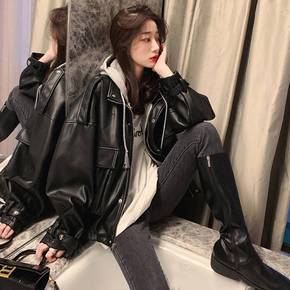 加厚机车皮衣女2021秋冬新款韩版BF宽松PU加棉...