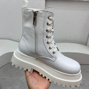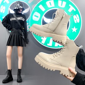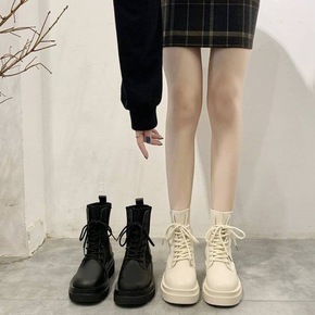 白色马丁靴女2022新款英伦风短靴子侧拉链厚底增高...