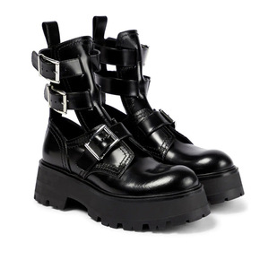 2022年新款松糕厚底镂空凉靴女真皮搭扣机车靴短靴...