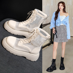 镂空马丁靴女夏季薄款透气厚底网靴2022新款英伦风...