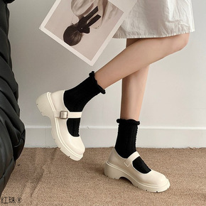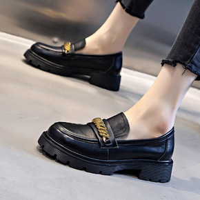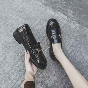 2021年春季新款单鞋女厚底英伦风小皮鞋制服鞋一字...