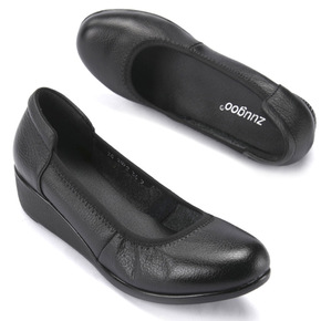 软底不磨脚舒适真皮女鞋坡跟圆头休闲女单鞋上班皮鞋工...