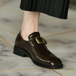 代发 方头复古小皮鞋女 低跟单鞋女皮带扣女鞋时尚...
