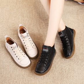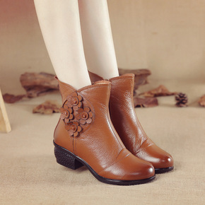 2020年秋冬新款休闲真皮女鞋民族风花朵女棉靴软底...