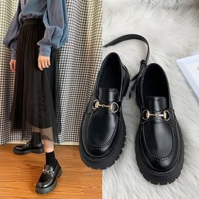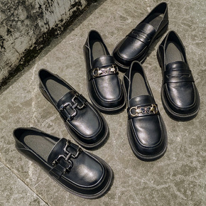 2021年夏季新款复古英伦风小皮鞋松糕厚底乐福鞋女...