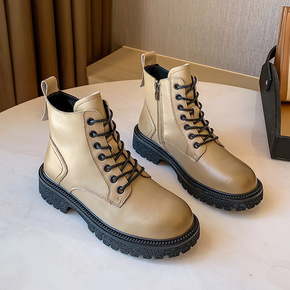 真皮马丁靴女英伦风2021秋冬新款粗跟复古女式短靴...