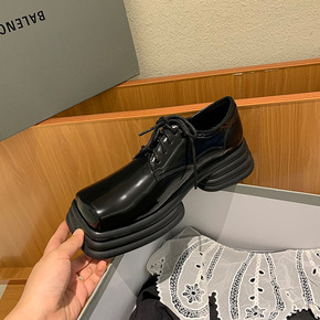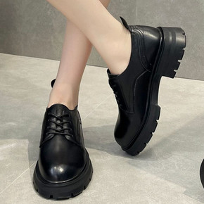 麦昆达小皮鞋女2021秋冬新款单鞋刘雯同款厚底鞋黑...