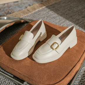 头层牛皮高跟乐福鞋女2021秋冬新款英伦风百搭真皮...