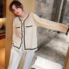 冬季加厚抽条金丝绒睡衣翻领纯色睡衣韩国风气质家居服...