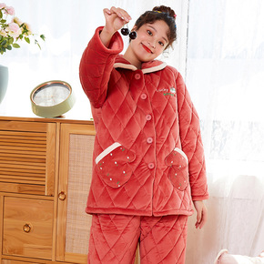 珊瑚绒睡衣女秋冬款冬季三层夹棉袄加厚加绒法兰绒保暖...
