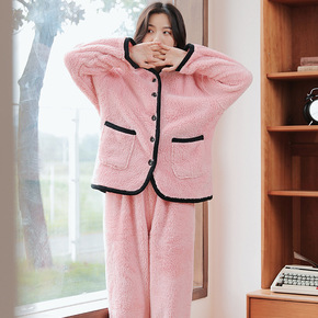 睡衣女冬季法兰绒套装加绒加厚女士学生可爱大码宽松珊...