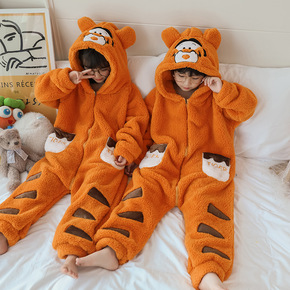 2021儿童睡衣女童秋冬长毛绒连帽款连体卡通男童家...