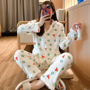 蜡笔小新睡衣女秋冬珊瑚绒可外穿冬季加厚加绒法兰绒可...