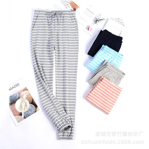 女士夏季睡裤针织棉居家空调长裤松口宽松直筒松紧高腰...