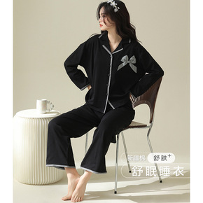 新款女士全棉高档睡衣黑色家居服简约日系休闲舒适宽松...