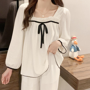 韩国东大门2022新品韩版宽松侧边荆条丝质家居服女...