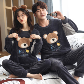 情侣款长袖睡衣秋冬男女士学生可爱韩版休闲绒款宽松家...