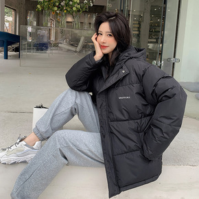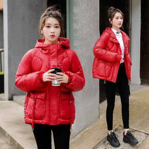 断色清 90白鸭绒连帽加厚面包羽绒服女短款宽松20...