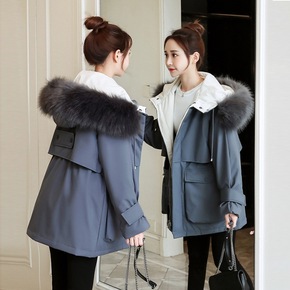 大毛领加绒加厚派克服外套女冬2022年新款韩版宽松...