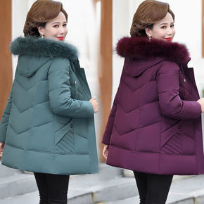 中老年女装羽绒棉服外套年轻妈妈冬装短款棉衣洋气毛领...