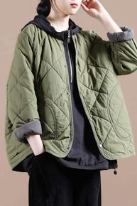 大码女装秋冬2021新款韩版宽松文艺菱格暗扣夹棉短...