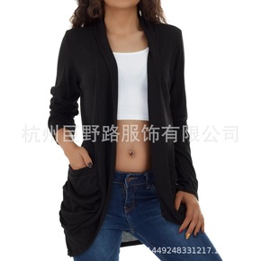 尤楚 2018春秋wish新款大码女装纯色长袖口袋...