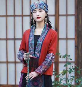2022新款民族风女装重工刺绣上衣外搭 贴布绣花流...
