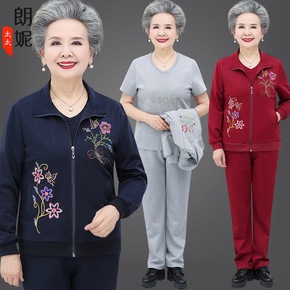 奶奶春装运动套装中老年人春春装女妈妈休闲卫衣拉链加...