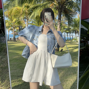 牛仔外套女夏季薄款泡泡袖短款小个子半袖衣开衫外搭短...