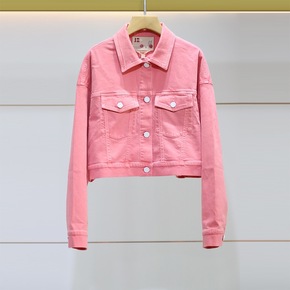 2021年春季新款单排扣粉色水洗牛仔上衣外套女装E...