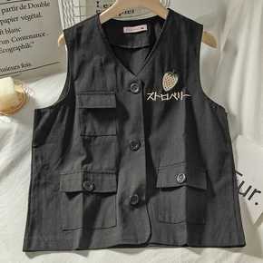 韩版宽松休闲百搭马甲背心女春季新款刺绣无袖英伦风春...