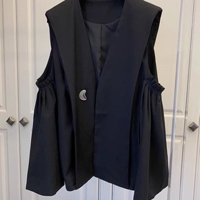 韩版宽松休闲百褶伞型A字西装马甲马夹背心女202...