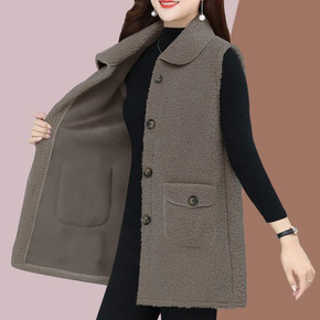 羊羔毛马甲女秋冬优质新款宽松小个子复古中长款无袖马...